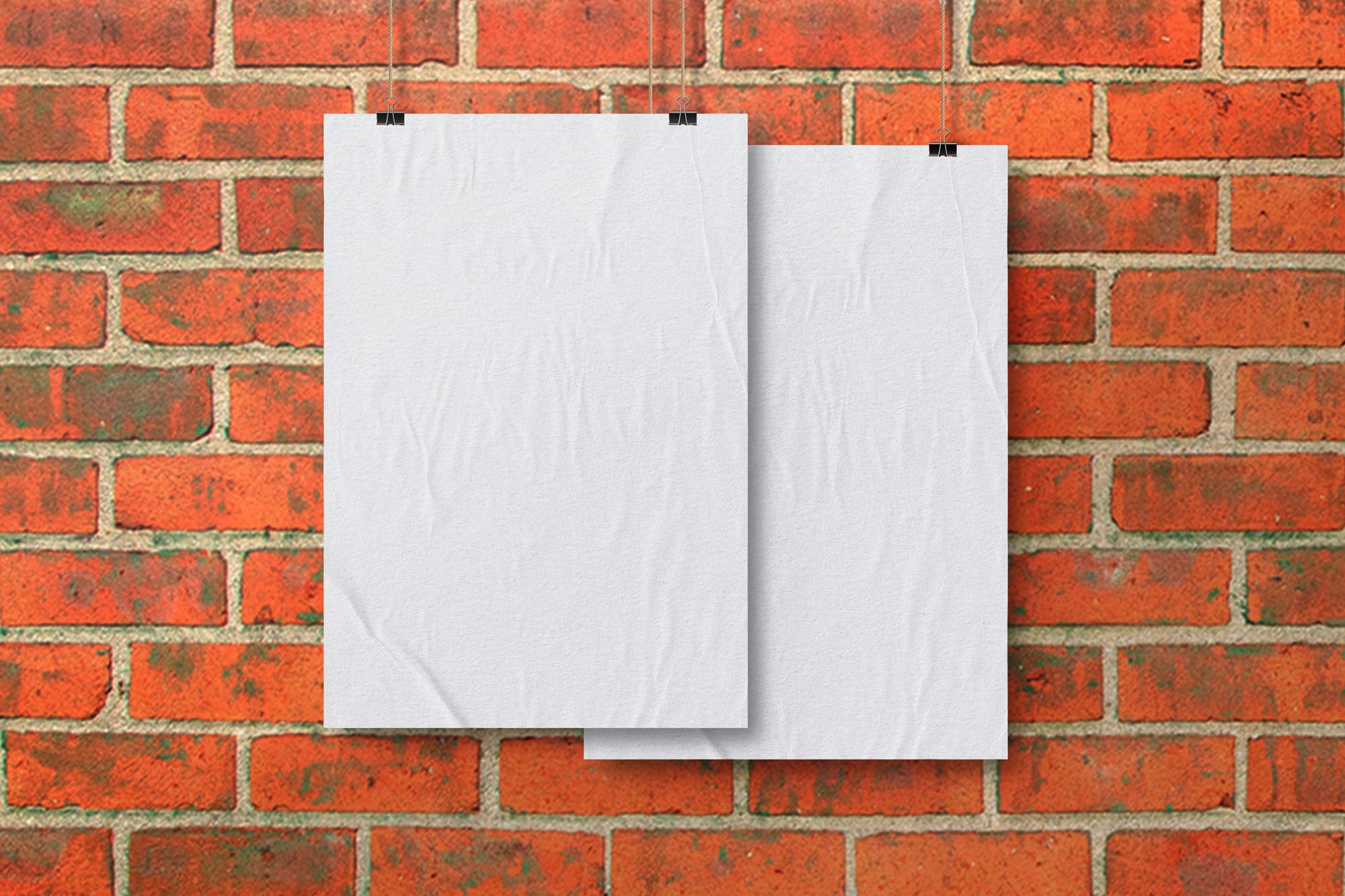Hanging Poster on Brick Wall Mockup